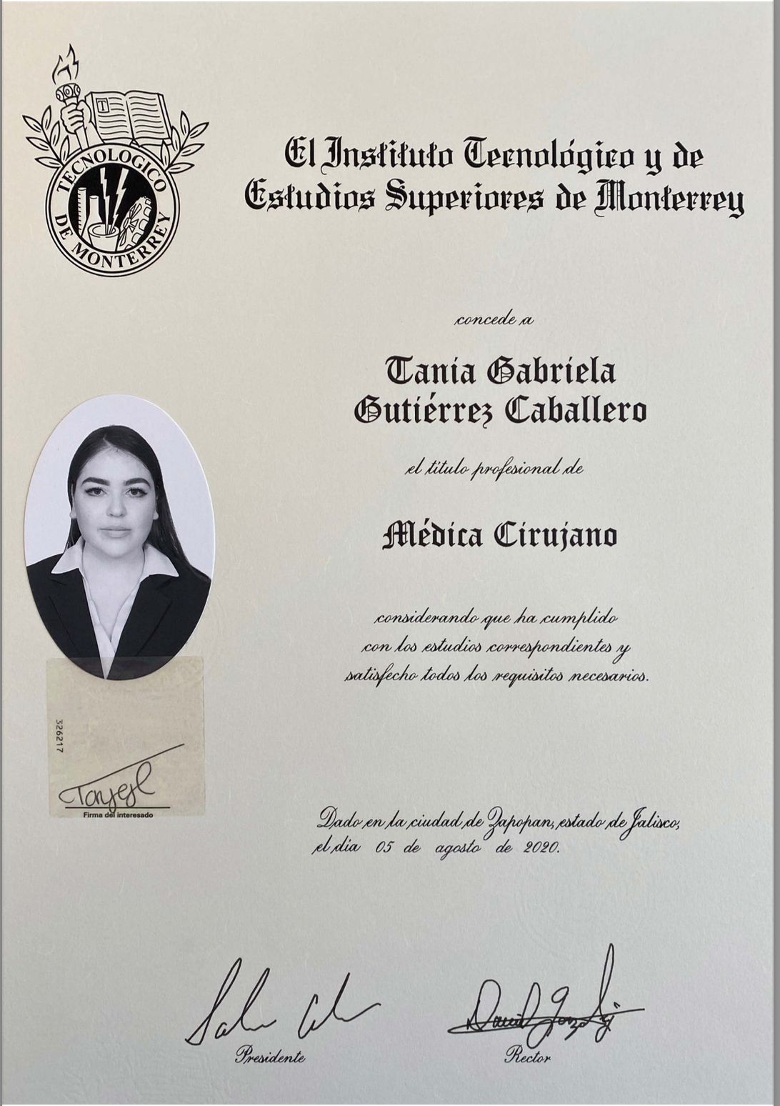 - Médico Cirujano por el Tecnológico de Monterrey